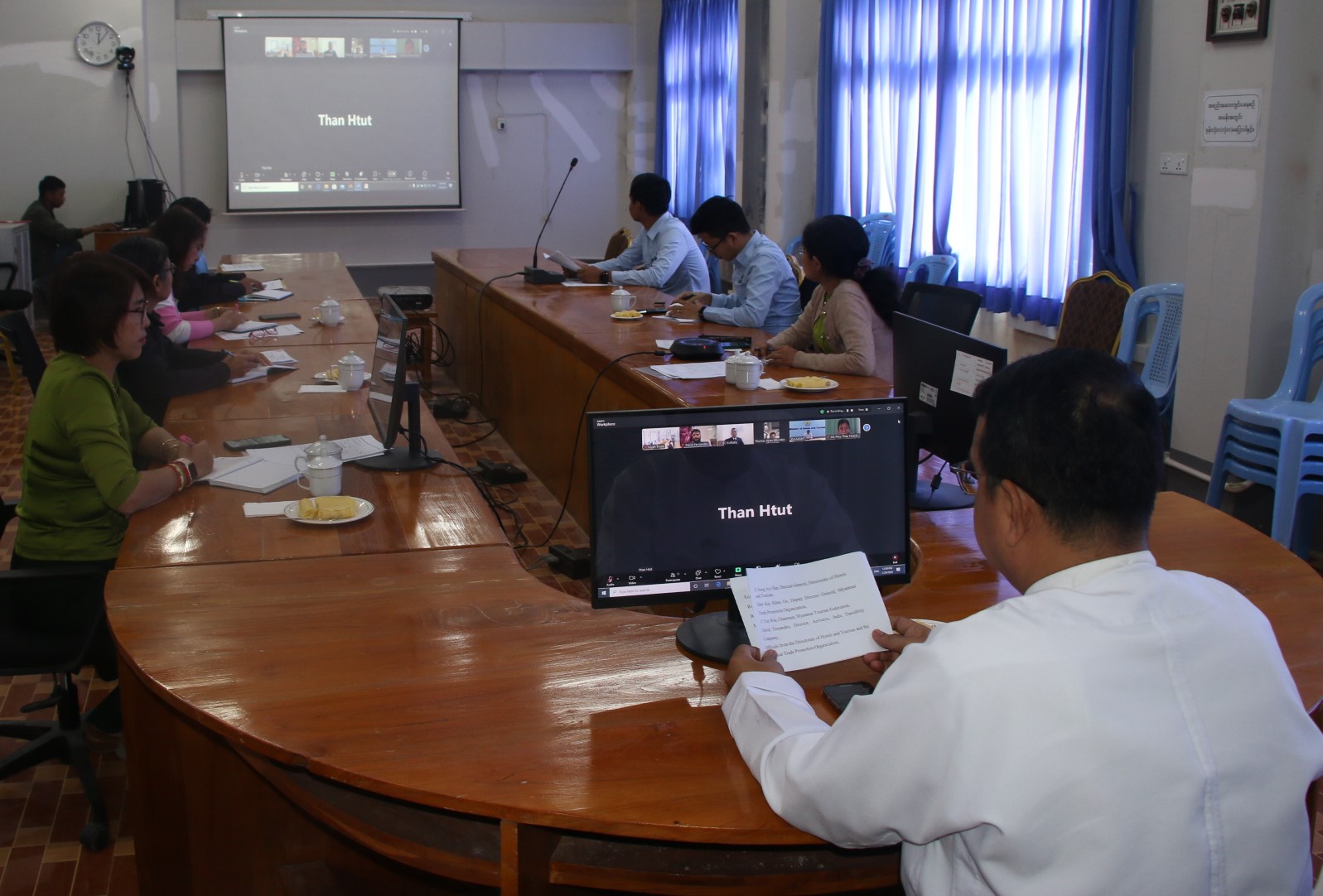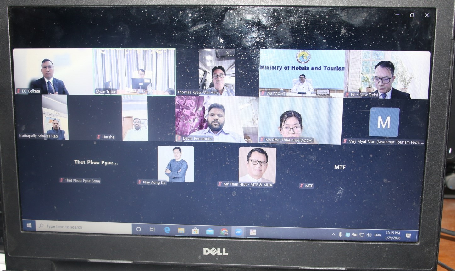 မြန်မာနိုင်ငံနှင့် အိန္ဒိယနိုင်ငံတို့အကြား ခရီးသွားလုပ်ငန်းမြှင့်တင်ဆောင်ရွက်နိုင်ရေး ဒုတိယအကြိမ် ညှိနှိုင်းအစည်းအဝေးကို ၂၀၂၆ ခုနှစ်၊ ဇန်နဝါရီလ ၂၉ ရက်နေ့ မြန်မာကုန်သွယ်မှု မြှင့်တင်ရေးအဖွဲ့၏ အစည်းအဝေးခန်းမတွင် Virtual စနစ်ဖြင့် ကျင်းပခဲ့ရာ ဟိုတယ်နှင့် ခရီးသွားညွှန်ကြားမှုဦးစီးဌာနမှ ညွှန်ကြားရေးမှူးချုပ်နှင့် တာဝန်ရှိသူများ၊ မြန်မာကုန်သွယ်မှု မြှင့်တင်ရေးအဖွဲ့မှ ညွှန်ကြားရေးမှူးချုပ်နှင့် တာဝန်ရှိသူများ၊ အိန္ဒိယနိုင်ငံ၊ နယူးဒေလီနှင့် ကော်လ်ကတ္တားမြို့တို့မှ မြန်မာစီးပွားရေးသံမှူးများ၊ မြန်မာနိုင်ငံခရီးသွားလုပ်ငန်းအဖွဲ့ချုပ်နှင့် အိန္ဒိယနိုင်ငံခရီးသွားလုပ်ငန်းကုမ္ပဏီဖြစ်သည့် Aerionyx Global Representative မှ တာဝန်ရှိသူများ စုစုပေါင်း ၂ ဦးခန့် တက်ရောက်ခဲ့ကြပါသည်။